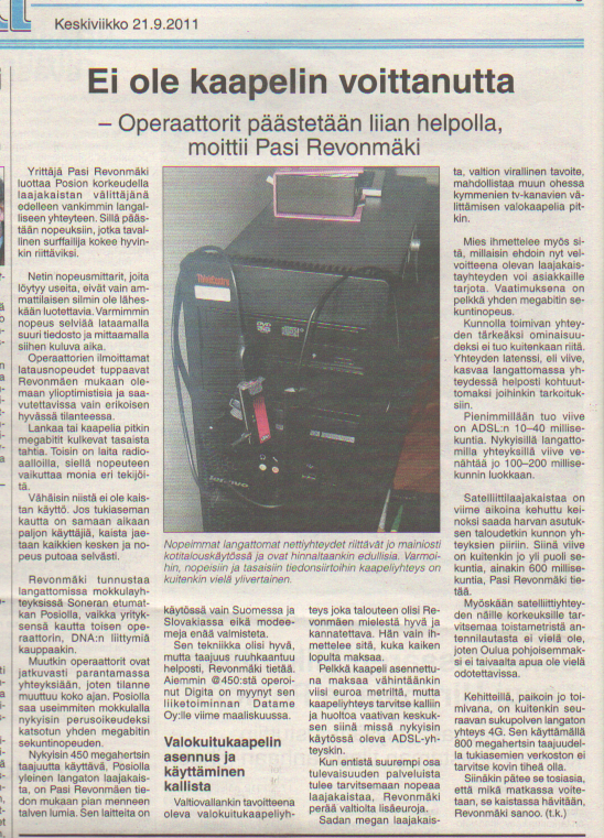 Kuriirilehden juttu Posion internetyhteyksistä 21.9.2011
